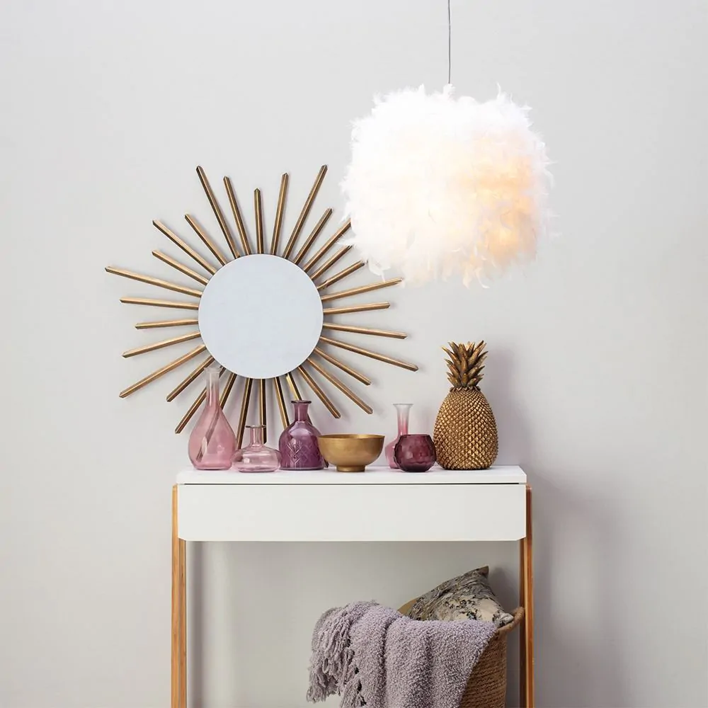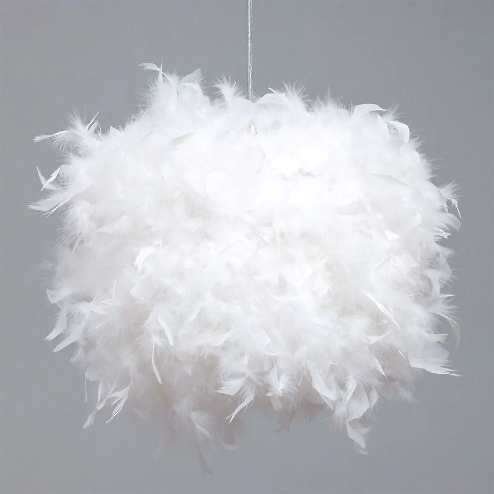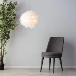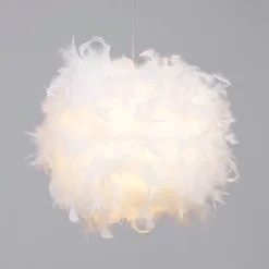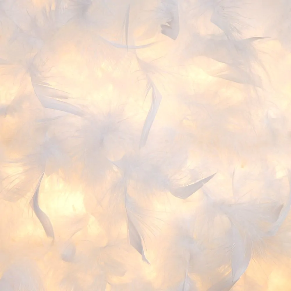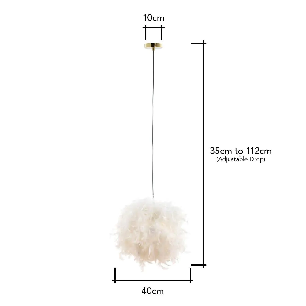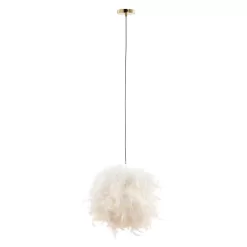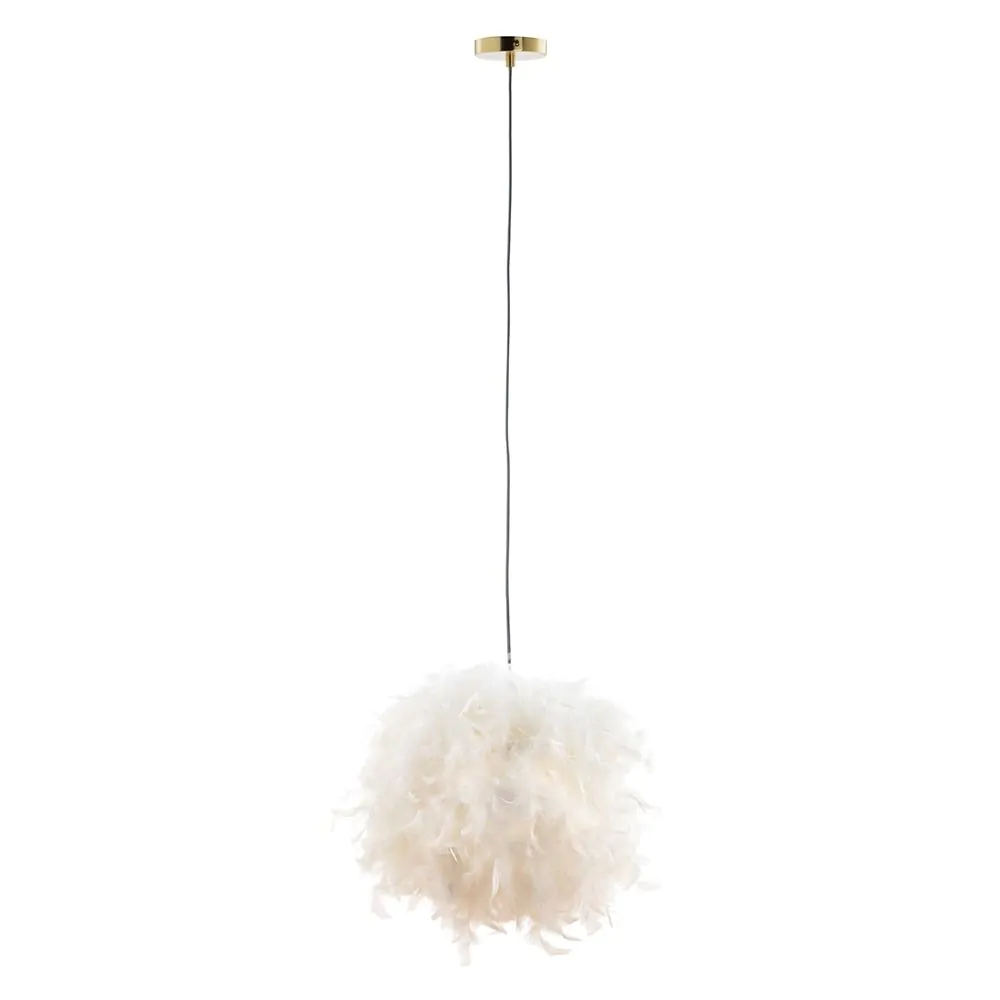 Pendant lighting is the perfect way to give a bold statement style to any décor, using a suspended structure to grab attention and create a focal point for the room. The Plume feather ball ceiling pendant light takes this bold effect to the extreme, with a 40cm feather shade surrounding the inner light, suspended from a polished brass plate. Whilst giving an eclectic style to the fitting, this shade also diffuses the light for a softer shine that helps you to create a more relaxing atmosphere in your home. Feature this white feather pendant light above a dining room table or in the centre of your living room to maximise exposure to this unusual fitting.