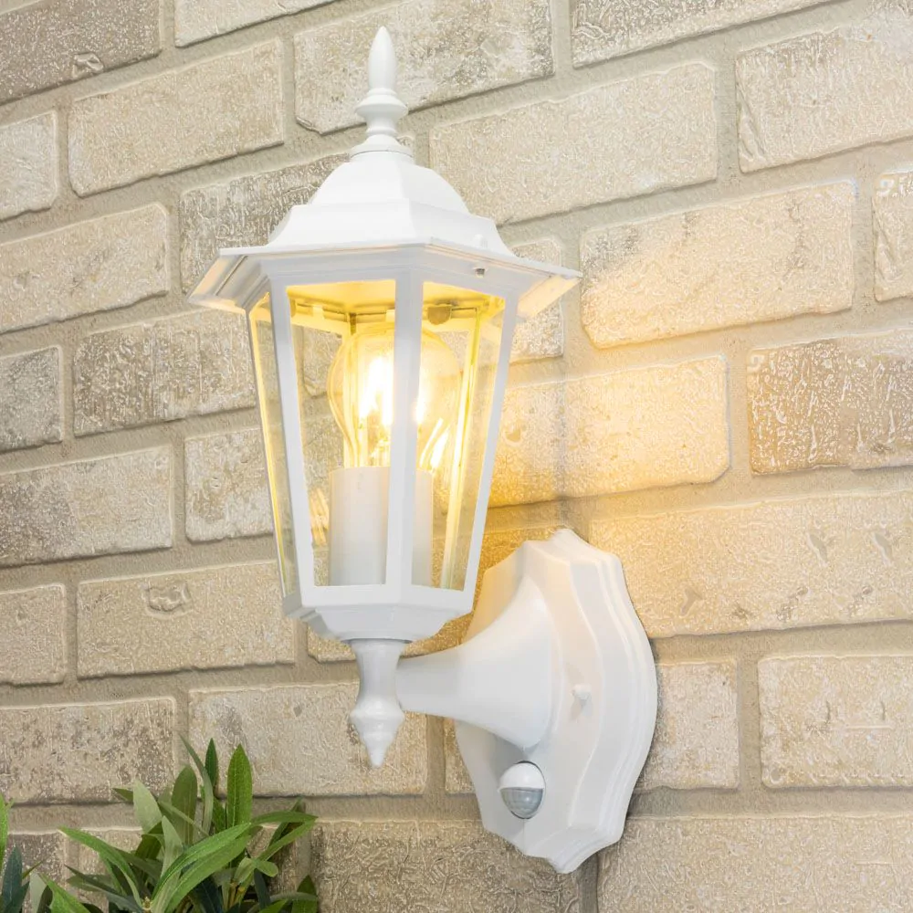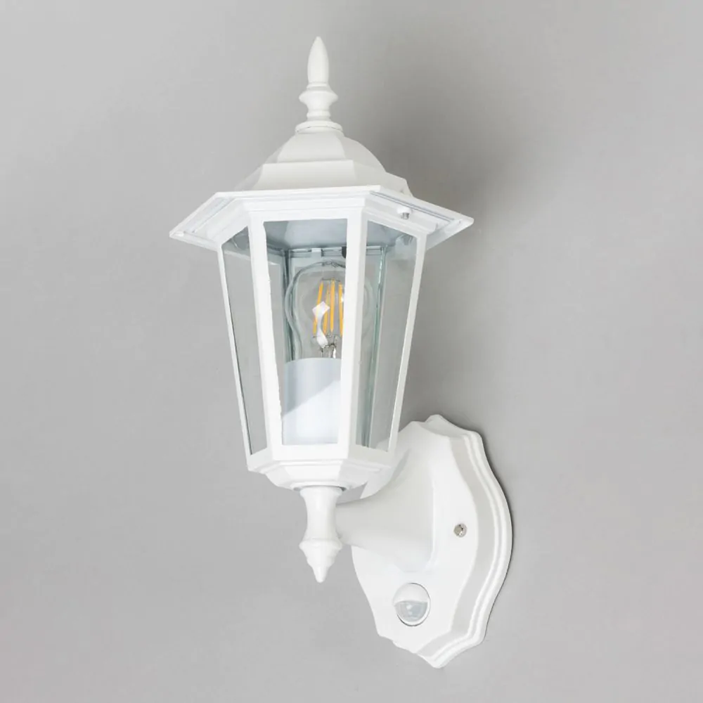 Reeta Outdoor Lantern Wall Light with PIR Sensor, White
