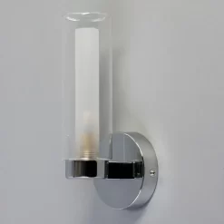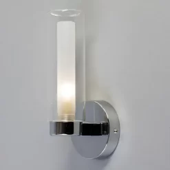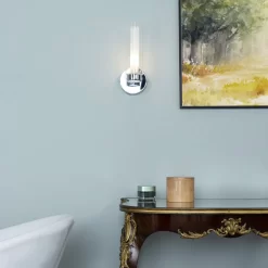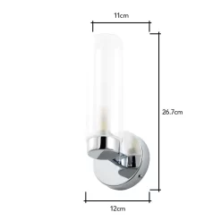 Decorative accent lighting for your bathroom design with the Riona Bathroom Wall Light. This wall light comes in a sleek chrome finish for a modern appearance and features a thin clear glass shade for a sophisticated look. It is also IP44 rated, meaning that it is safe for use in the bathroom as it is water resistant.