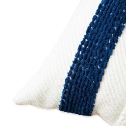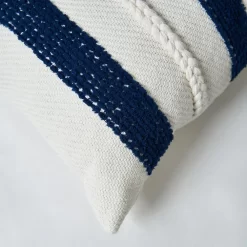 Riviera Stripe Cushion with Fringe, Navy