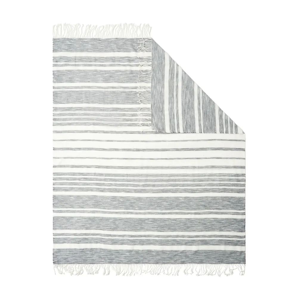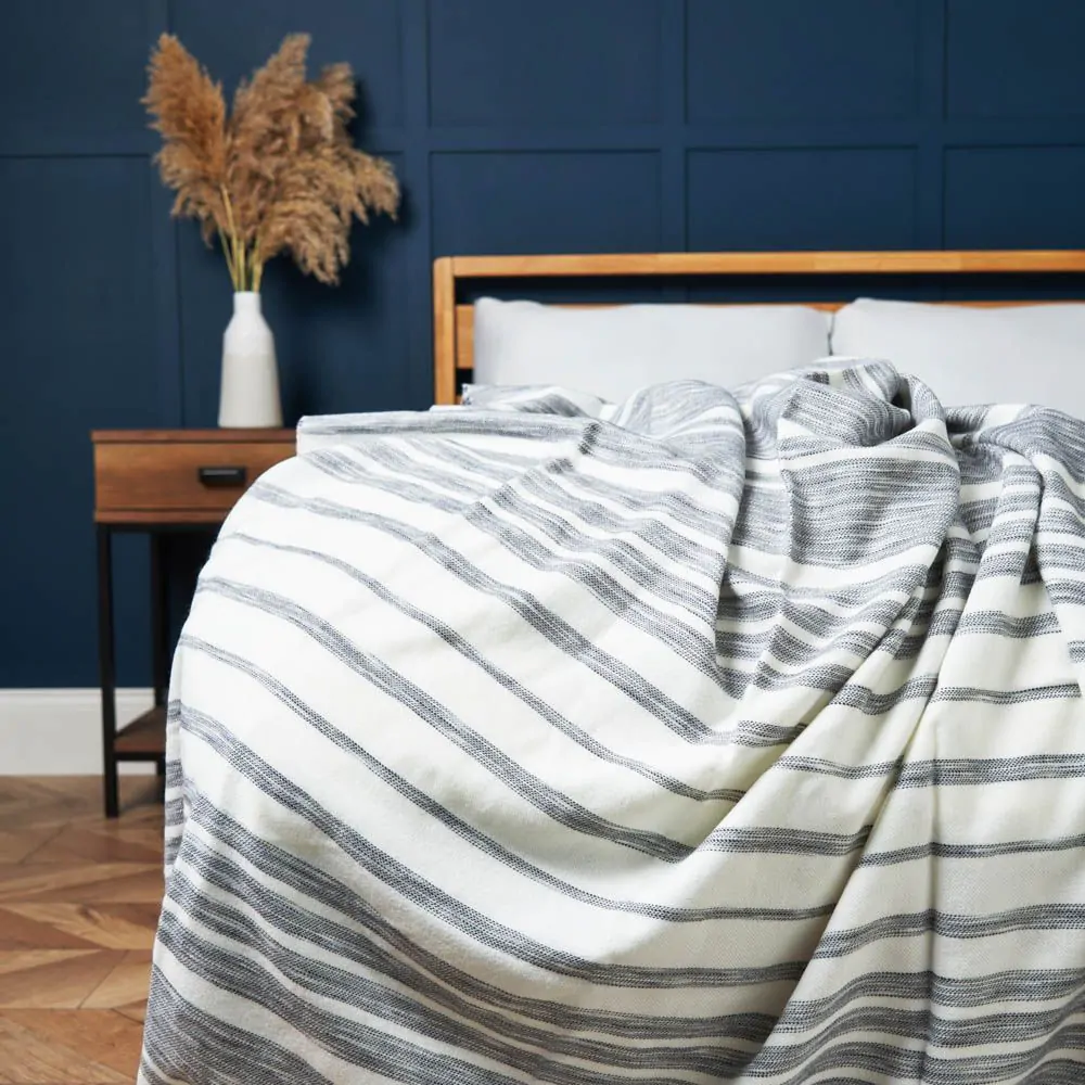 Enrich your living space with the Riviera Stripe Throw in Navy and Natural. The combination of navy and natural tones, in a classic striped pattern, creates a timeless look while the fringe trim offers a distinct boho or coastal theme. Measuring 127 x 152cm, it offers both style and comfort, looking ideal over any couch, chair, or bed.