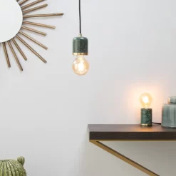 The Romano Vessel Table Lamp in green is a fantastic piece for the modern home, giving a spread of soft ambient light to the space that’ll help you to unwind and relax in the evening. This lamp also gives a stylish twist to the space that’s sure to keep the your home looking updated and on trend! Finished in a green marble effect and detailed with a satin brass accent for an eclectic modern feel, the lamp also comes with an LED vintage tinted bulb – this is perfect for making the most of the exposed bulb design in the most eye-catching way!