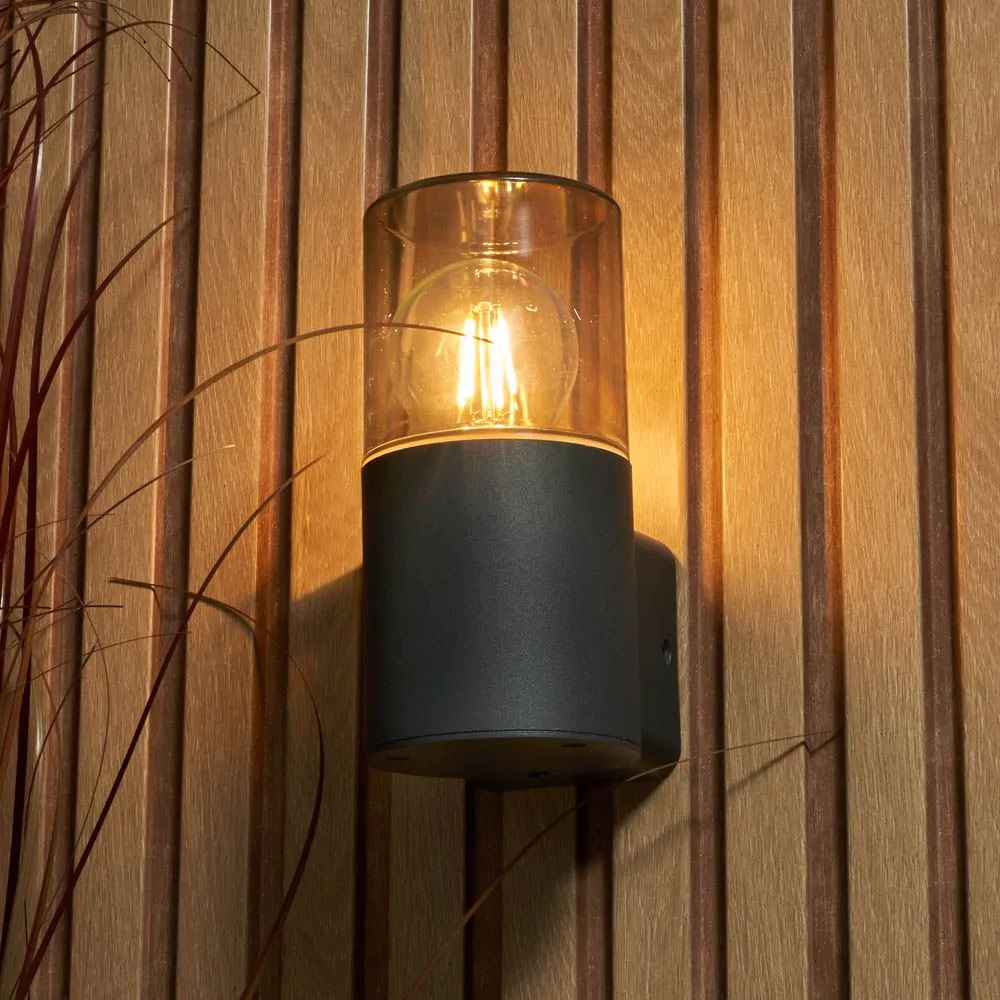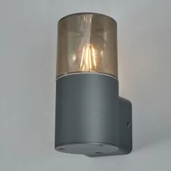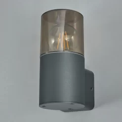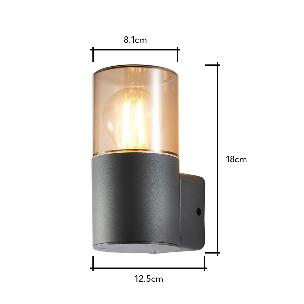 Rome Outdoor Round Up Wall Light with Smoked Shade, Grey
