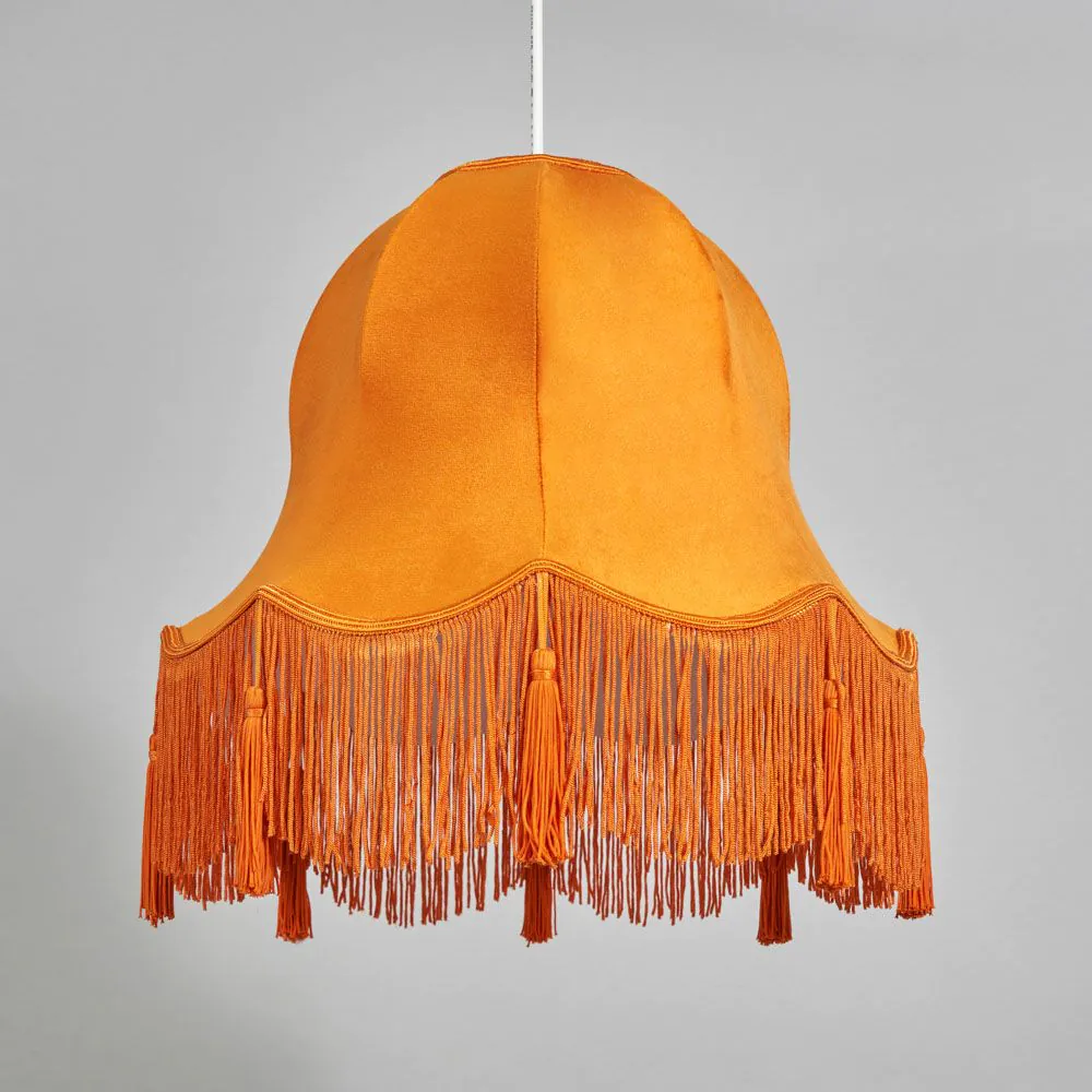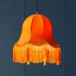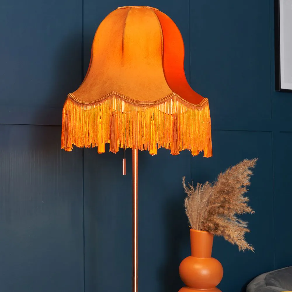 Add warmth to your lighting with the Rosemary Large Burnt Orange Shade. The burnt orange hue infuses your space with a cosy and inviting ambience, while the large size creates a bold visual statement. This shade becomes a focal point that complements various interior styles with a fringe trim for textural interest.