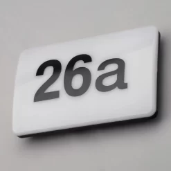 Stylish and customisable lighting for the front of your home, the Rouen LED Outdoor Door Light with Numbers and Sensor is guaranteed to give your home a modern appearance. This illuminated house number features a range of numbers and letters for you to change to suit your home, making it easy for guests and delivery drivers to find your house. This light also has a sleek black and white finish for an urban look.