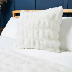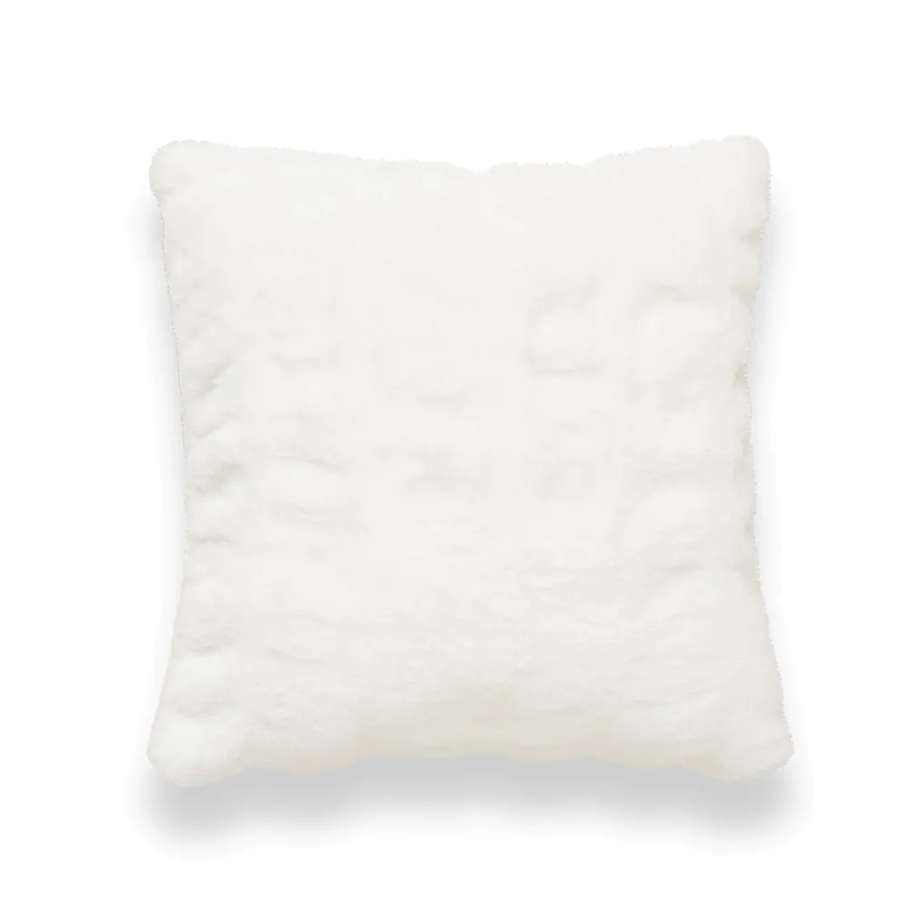 Ruched Faux Fur Cushion, White