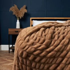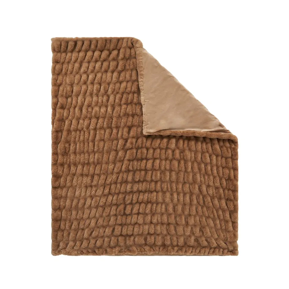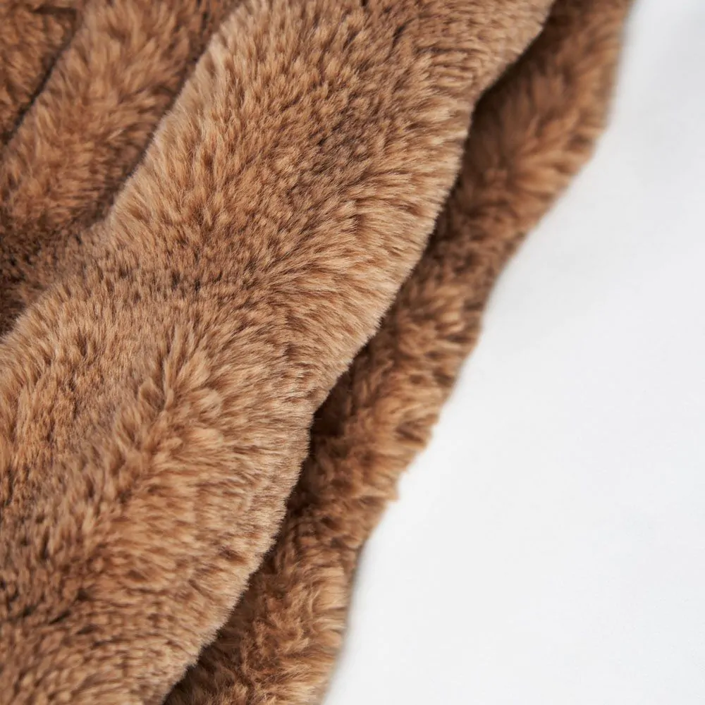 - Ruched faux fur design enhances the throw’s visual appeal.