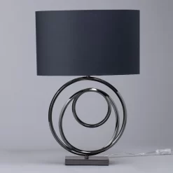 Saturn Swirl Base Table Lamp with Dark Grey Shade, Black Nickel