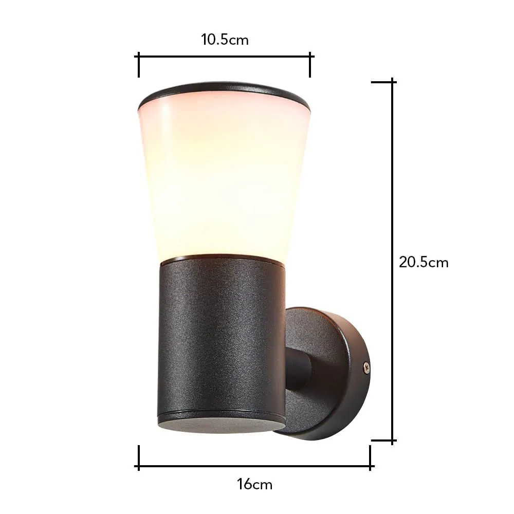 Bright and practical outdoor lighting for your front door or entryway with the Shem Outdoor Wall Light. This wall light comes in a stylish black finish for a modern aesthetic and has a minimalist design featuring an opal glass shade which diffuses a warm glow outwards. It is also IP44 rated to ensure water resistance against outdoor weather conditions.