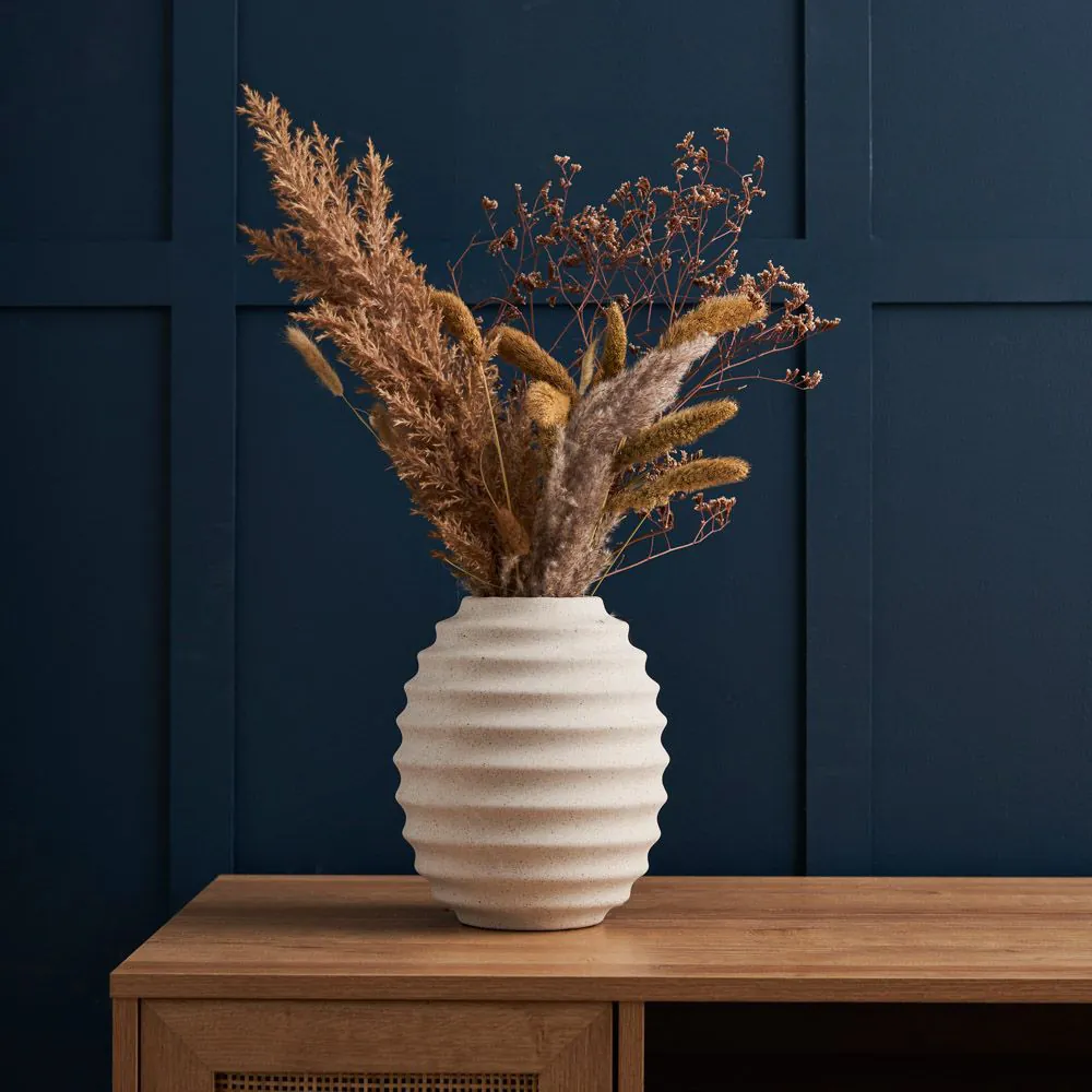 Introduce a touch of nature-inspired charm to your decor with our Beehive Small Ceramic Vase in Cream, a delightful and whimsical piece that adds character to any space. The beehive-inspired design and creamy hue create a warm and inviting ambience, making it the perfect decorative accent piece. Use this vase to style single stems or dried flower arrangements, looking perfect on any bedside table or dresser.