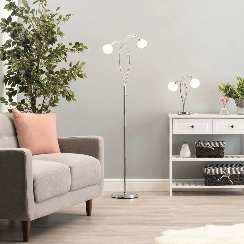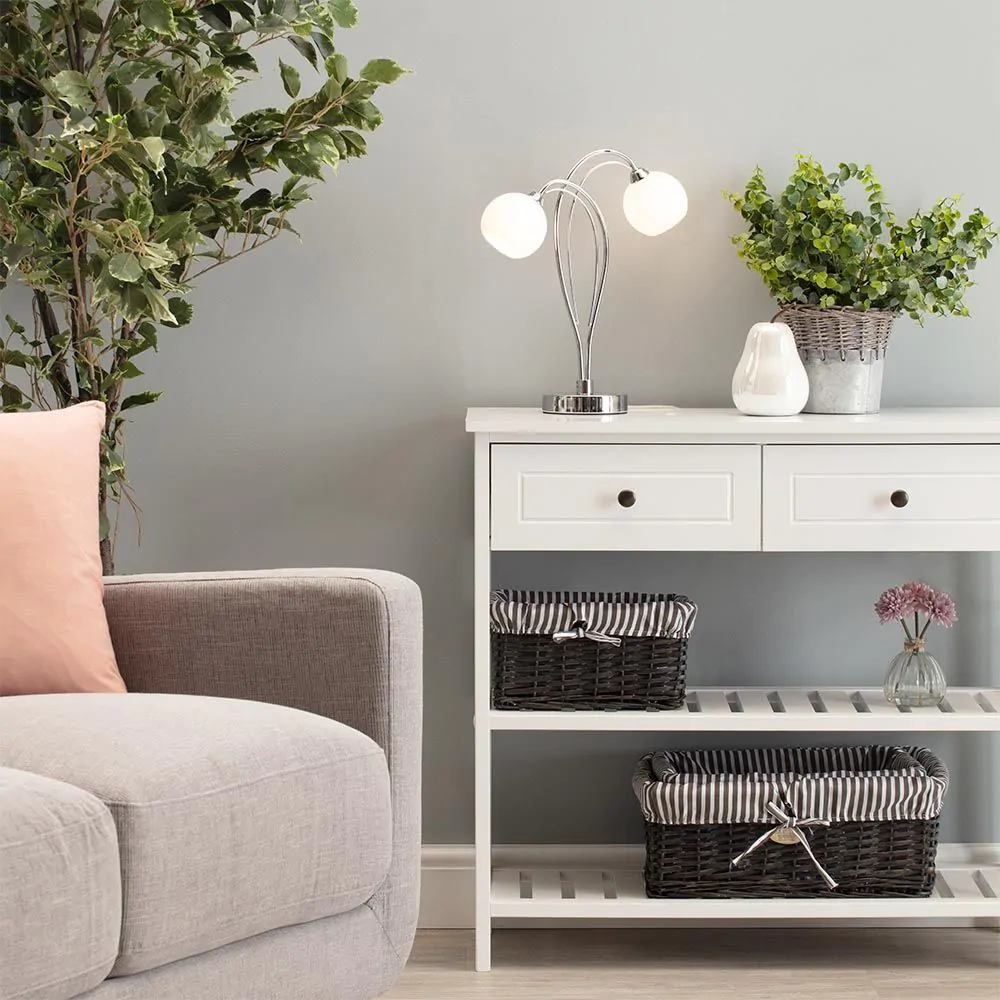 Table lamps are a brilliant way of adding extra light to a room and are great for creating a relaxing atmosphere. Our Soni Table Lamp has a sleek design that would work well with a wide variety of interiors and would look great sat on a bedside table or coffee table. The chrome finish paired with the opal glass shades make this design very versatile too and it would look great paired with the other lights in this collection.