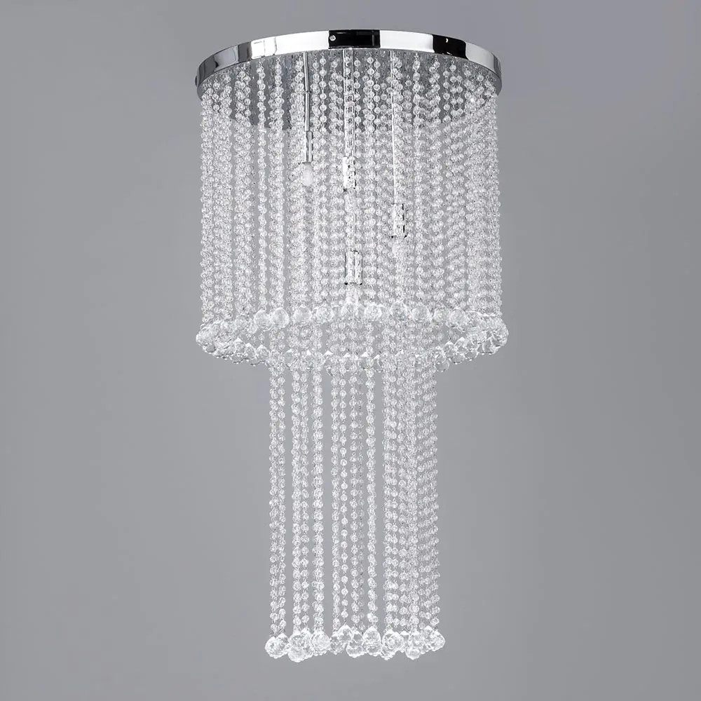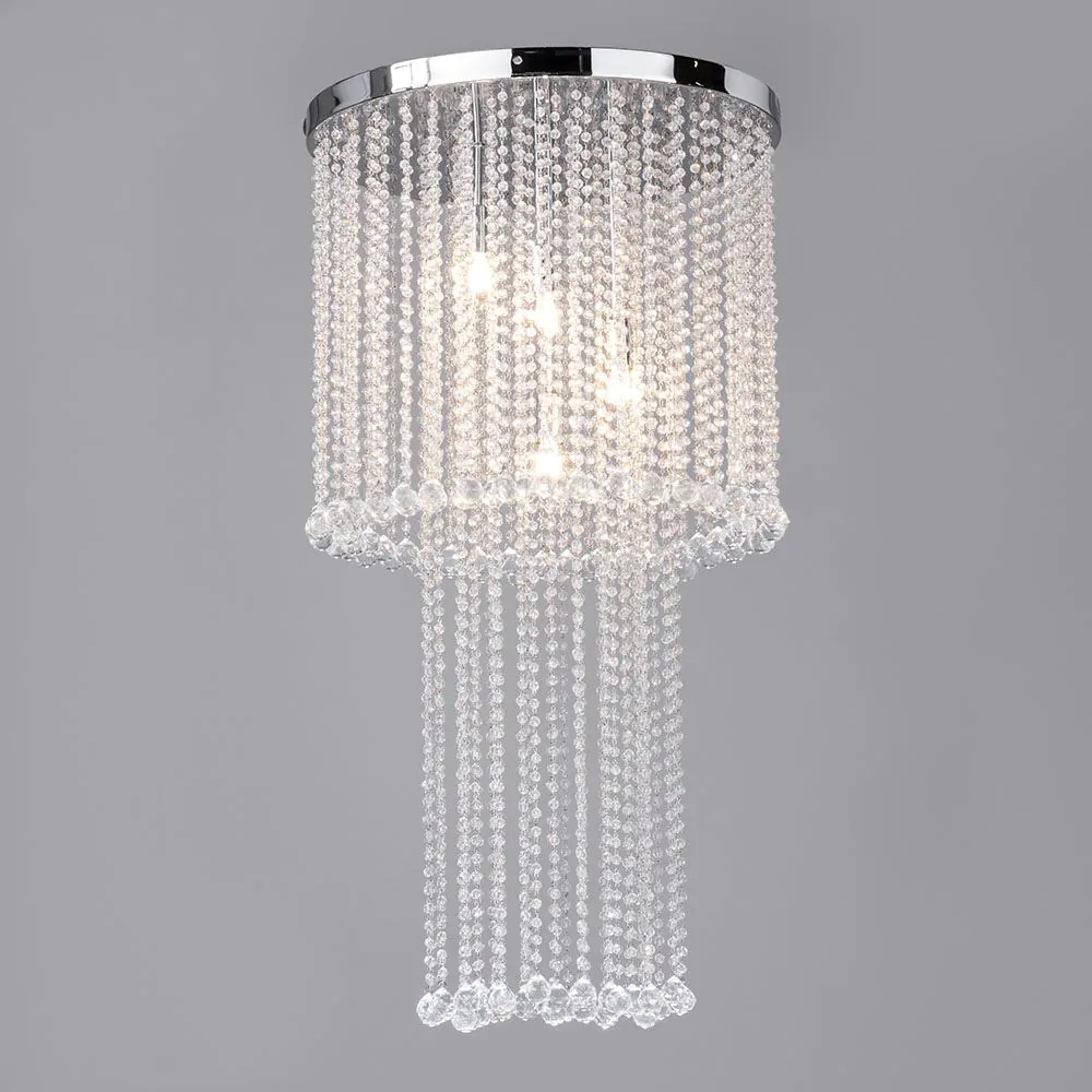 Bring an elegant lighting style to your décor with the Sophie Flush Ceiling Light. This stunning flush fitting comes in a sleek chrome finish and features two tiers of crystal effect beading which sparkle as they reflect the light. Style this light above any stairway or landing for a sophisticated and luxurious looking focal point in your home.