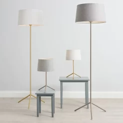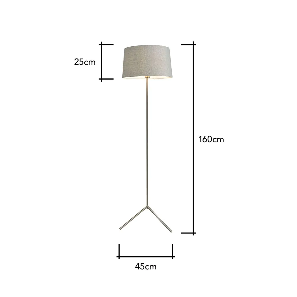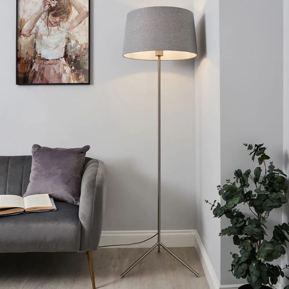 Stassy Tripod Feet Floor Lamp with Grey Shade, Satin Nickel