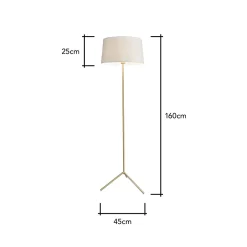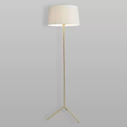 Stassy Tripod Feet Floor Lamp with White Shade, Satin Brass