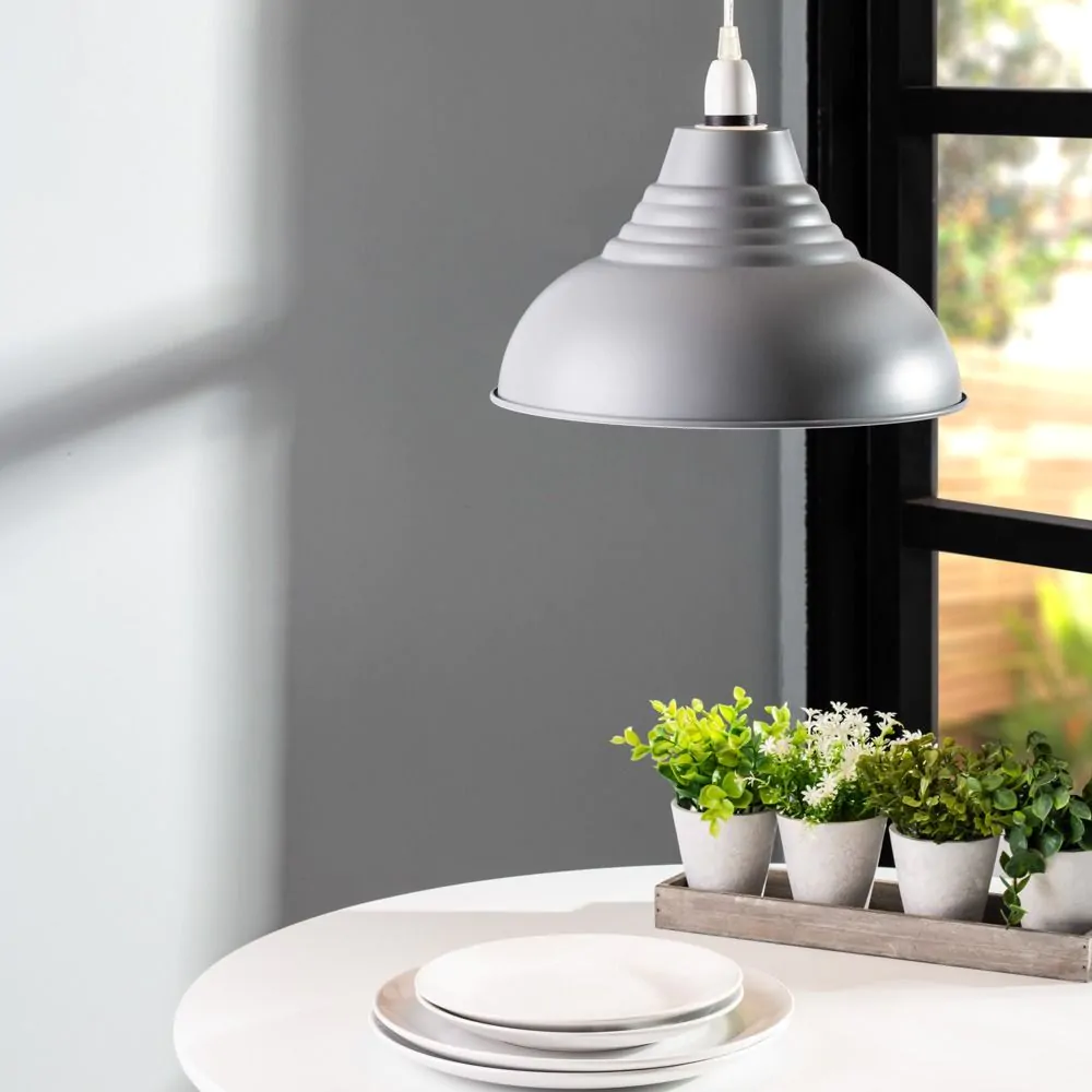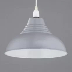 The Steel Diner Easy-fit Grey Light Shade blurs the lines between modern and industrial styling, featuring a smooth, curving design that projects a wonderful display of light down into your room, practically task lighting any kitchen island or breakfast bar efficiently. Finished in grey, this versatile shade can be styled in any home, providing a modern accent that simply fits over your existing ceiling pendant light fitting.