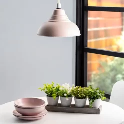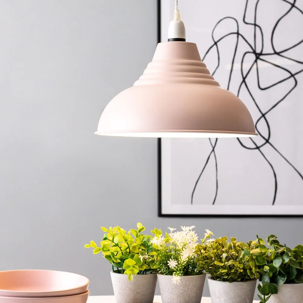 Incorporate the refined industrial look into your home with our Steel Diner Easyfit Shade. Finished in pink, this pastel piece has a beautiful, industrial vibe with a softer, modern hint, due to the smoothed, curving design that adds a sophisticated look to your rooms. The warm light within projects down, beautifully and efficiently lighting the surrounding areas, perfect for kitchen lighting.