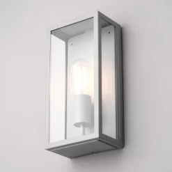 If you’re looking for a simple outdoor wall light for your modern exterior arrangement, our Stratus wall light in silver could be the perfect choice. With a sleek box design and a single interior light, the fitting looks great and illuminates the surrounding space practically for a great mixture of style and functionality in your outdoor areas. The outdoor lantern is ideal for use next to a doorway or to light up a path and is IP44 rated to ensure safety when using the piece outdoors.