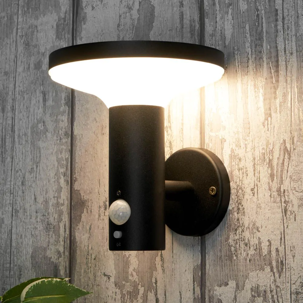 Tarak LED Outdoor Solar Wall Light with PIR Sensor, Black