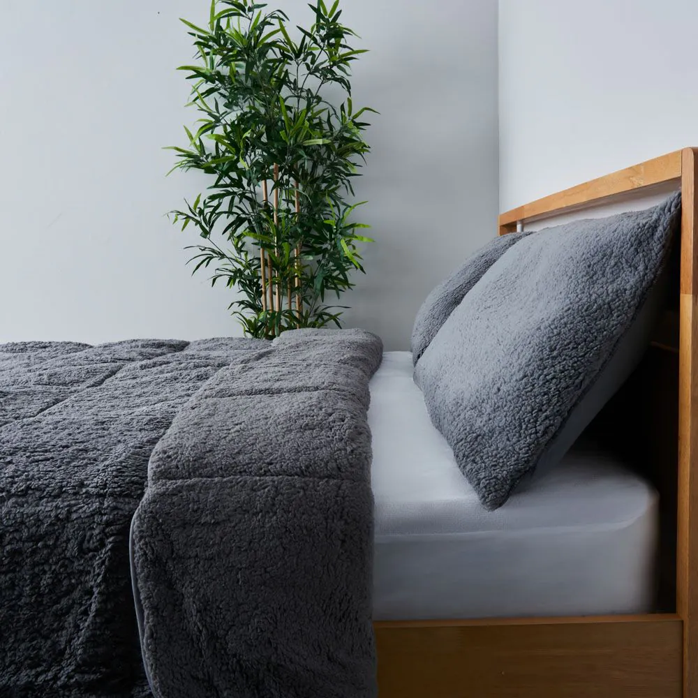 Elevate your bedding with our Teddy Bear Duvet in Grey, available in double and king sizes. Transform your bedroom into a cosy retreat with this charming polyester fibre duvet with a 13.5 tog to ensure warmth on chilly nights. This duvet boasts a soft and fluffy texture reminiscent of a teddy bear’s fur, providing plush comfort and looking ideal within neutral colour schemes