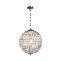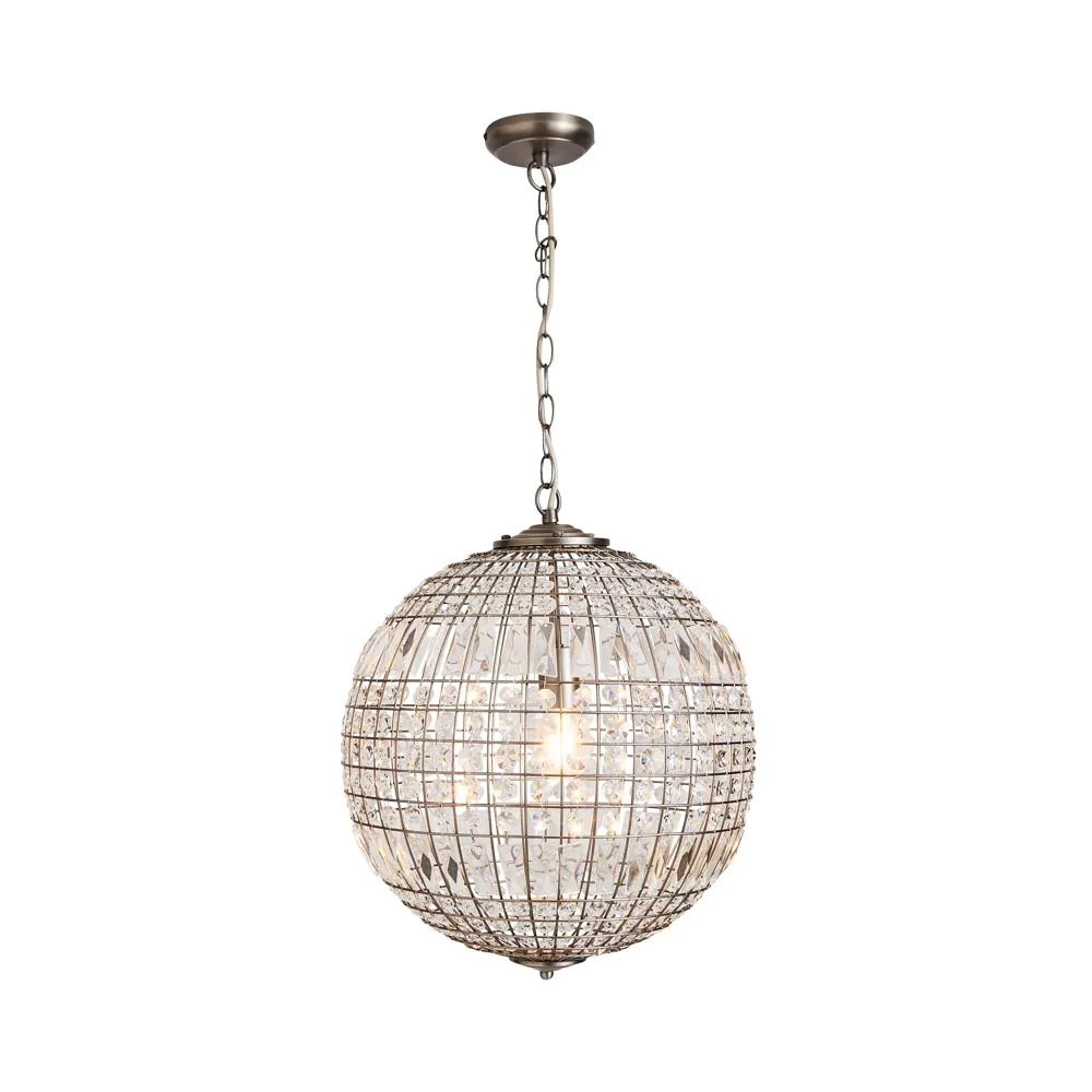 Terri 1 Light Large Glass Crystal Ball Pendant, Pewter