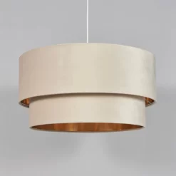 Elevate your lighting with the Tia Super Size Tiered Velvet Shade in Ivory and Brass. The luxurious velvet texture and brass accents create an opulent and sophisticated look. With its super-size design, this shade becomes a statement piece that adds both elegance and warmth to your space.