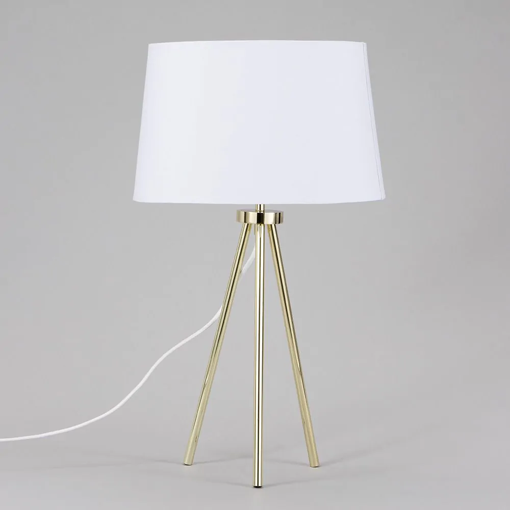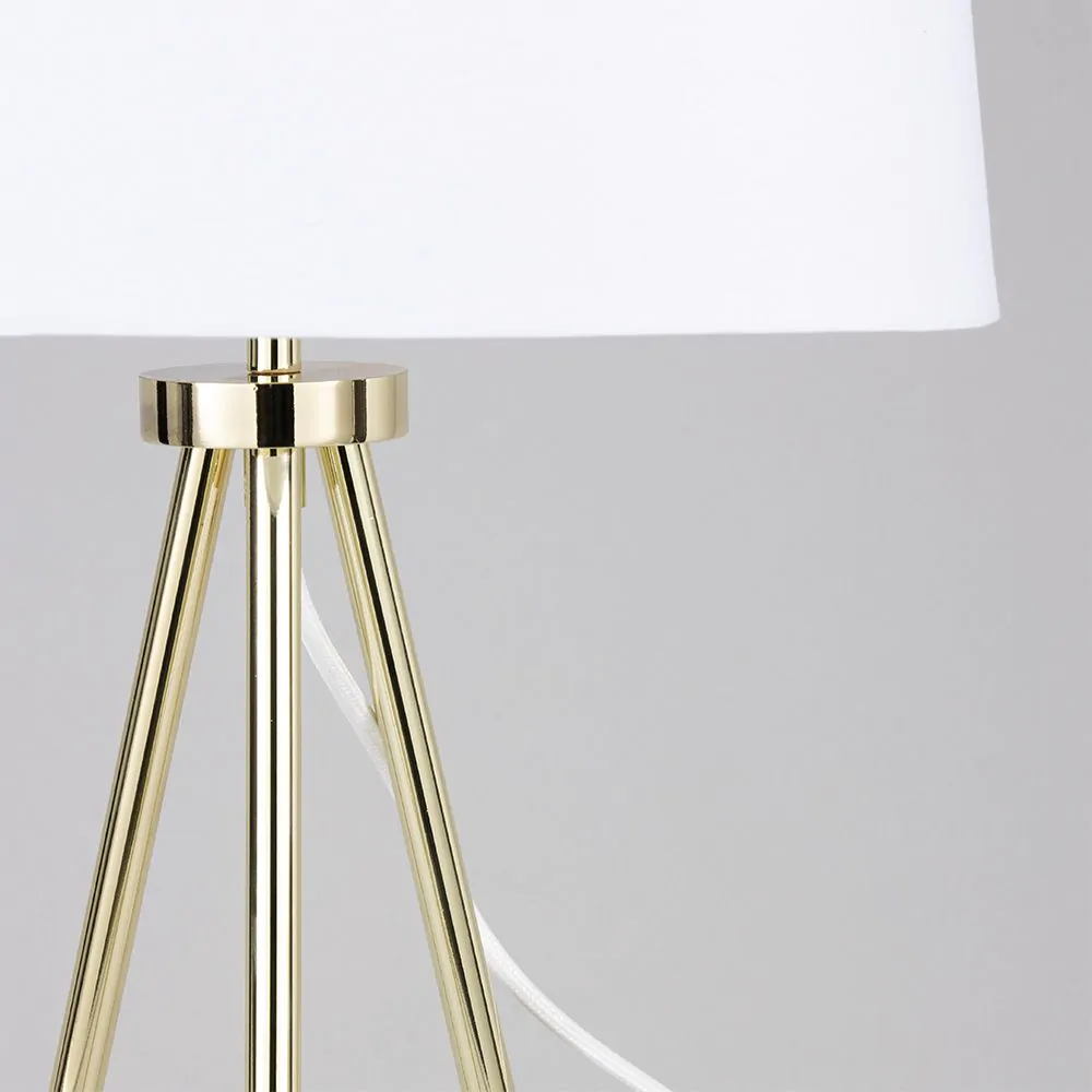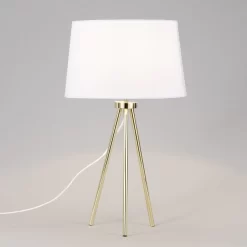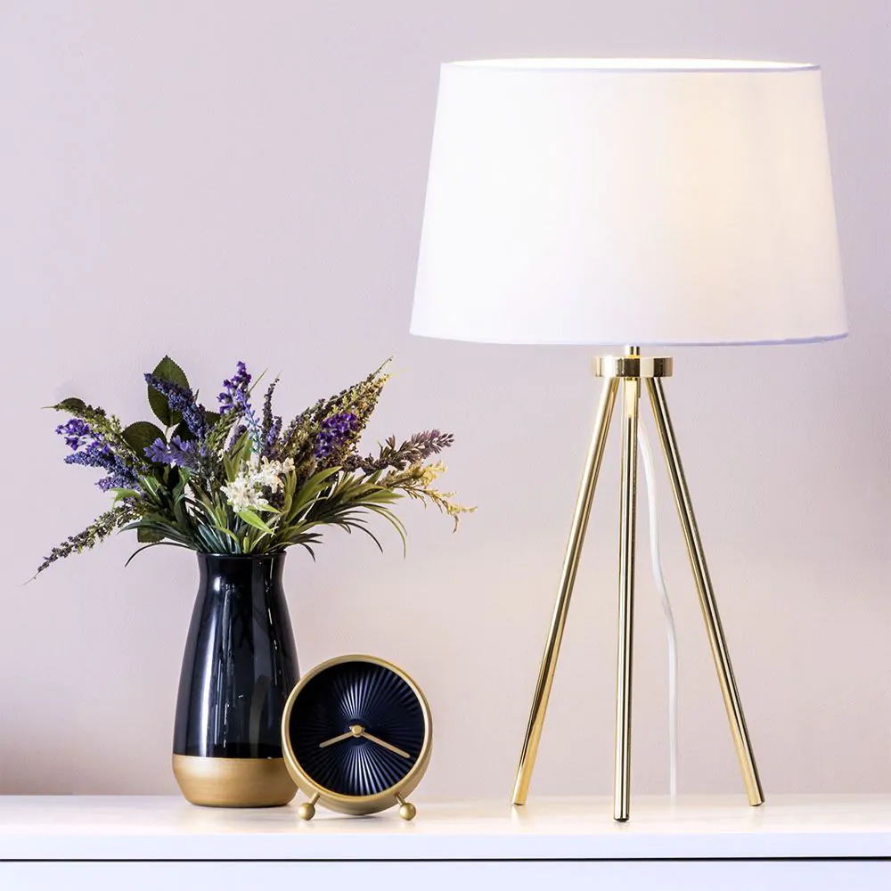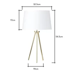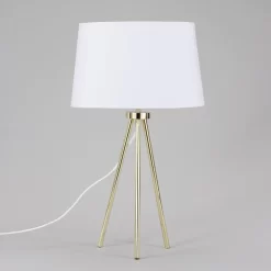 Bring the modern look to your interiors with the stunning Tristan Tripod Table Lamp. The metallic brass finish has a gorgeous warmth that beautifully complements the ambient glow. The white shade has a contemporary flair while diffusing the light within and filling your space with a soft mood light. Style this table lamp in your living room side tables to create the perfect cosy mood for unwinding at the end of a long day.