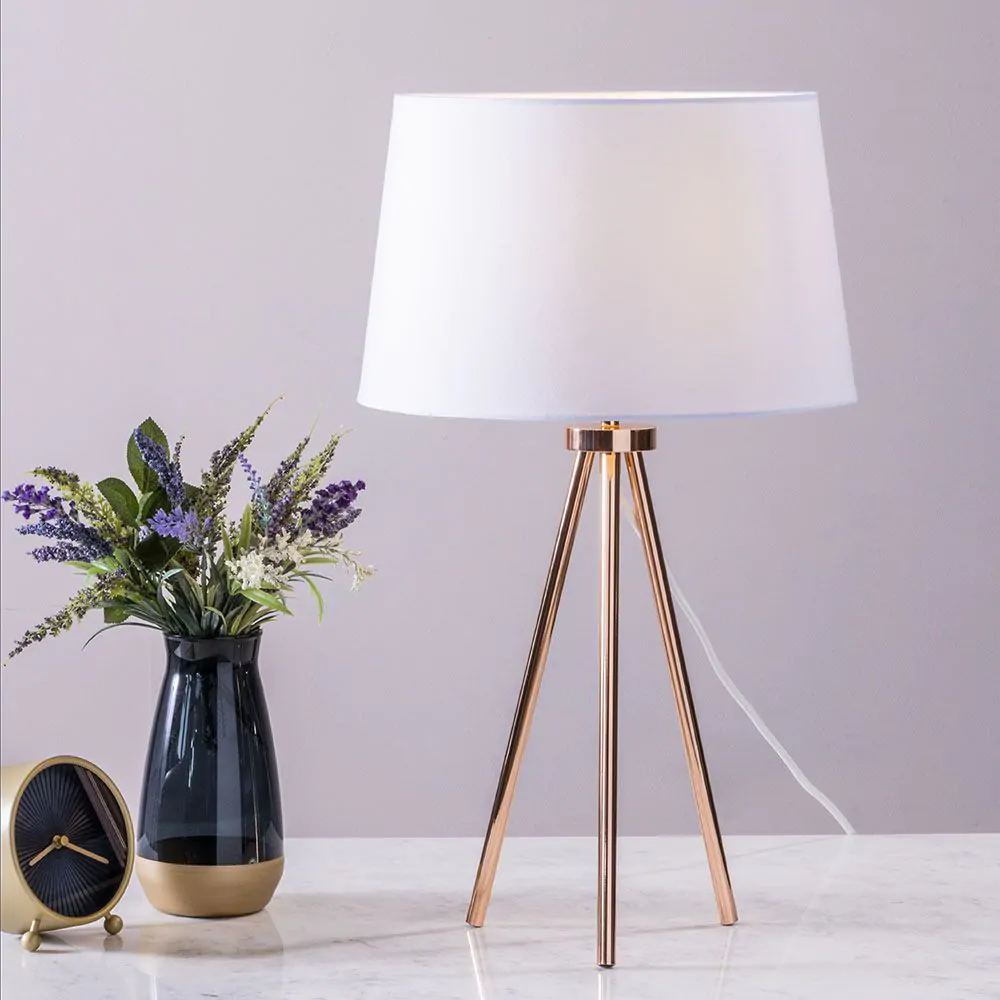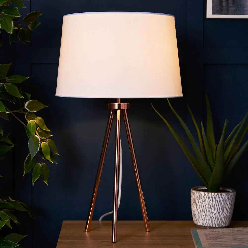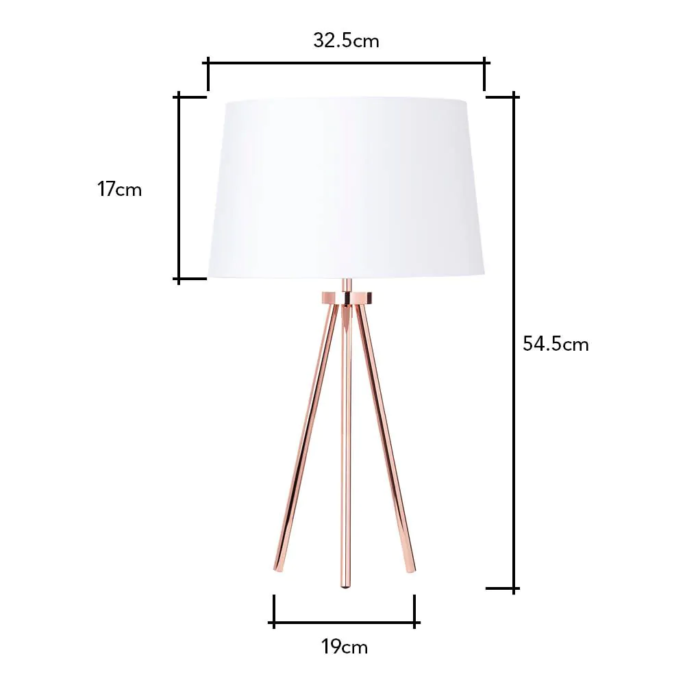 Tristan Tripod Table Lamp, Copper and White