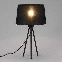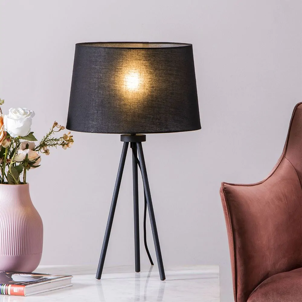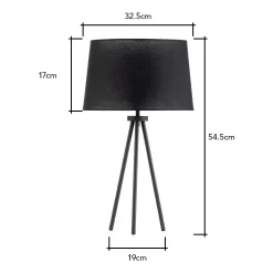 Our Tristan Tripod Table Lamp is the perfect addition to your living room side tables. The satin black finish matches the black shade for a sleek, modern aesthetic ideal for any home decor. The tripod legs have a trendy, contemporary appearance.