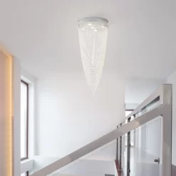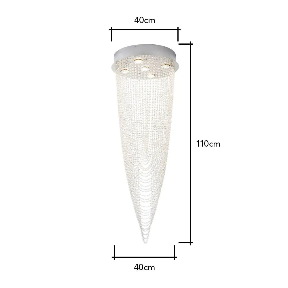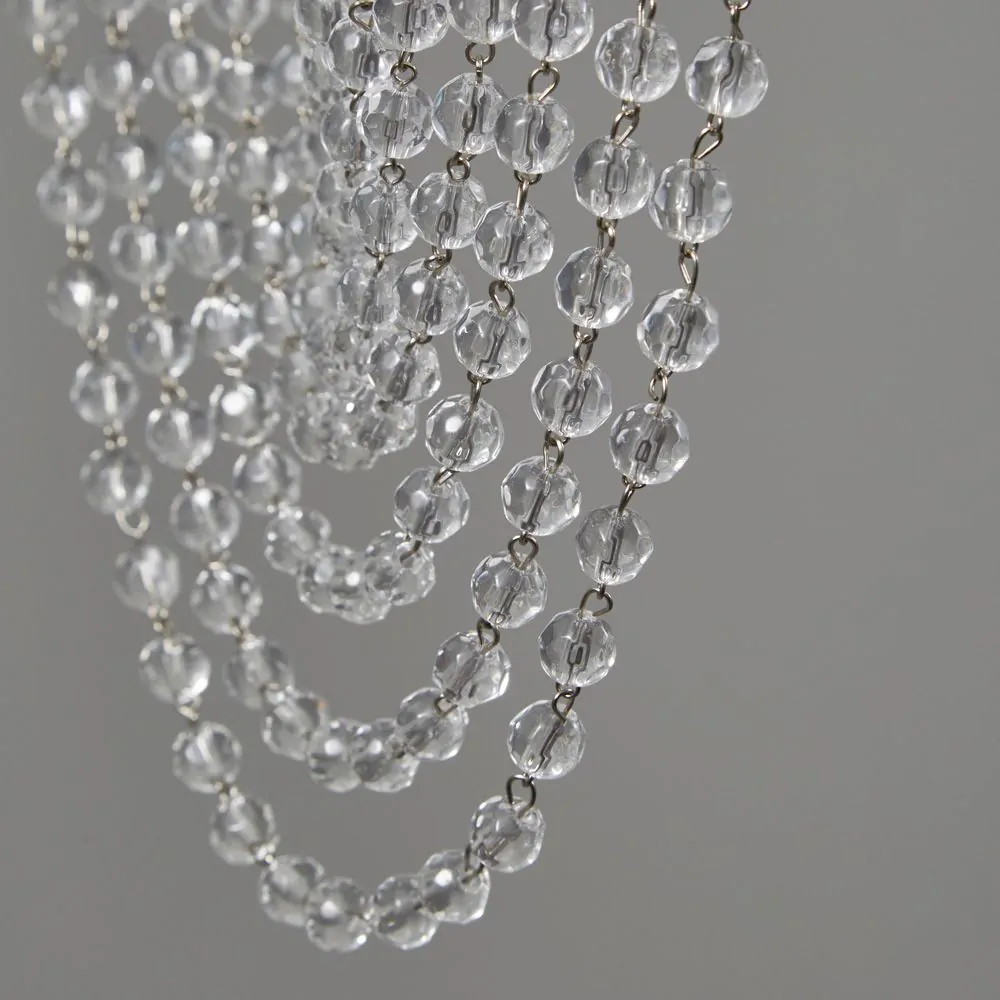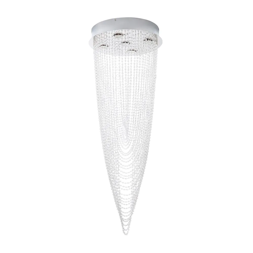 Finished in chrome, our beautiful Valerie 5 Light Ceiling light adds a glamorous statement to any home, with an arrangement of crystal effect droplets beautifully cascading from the circular ceiling plate in a gorgeous, draping fashion – shining beautifully as the lights above illuminate a soft glow down into the room. In a spiralling motion, the draped detailing is ideal for creating a statement centrepiece to your interiors, looking fabulous in the centre of your living room or bedroom.