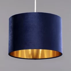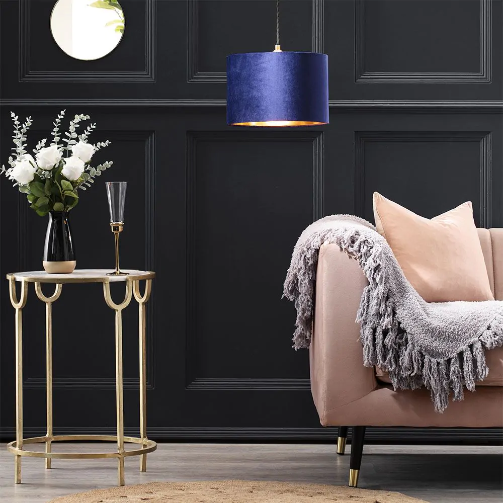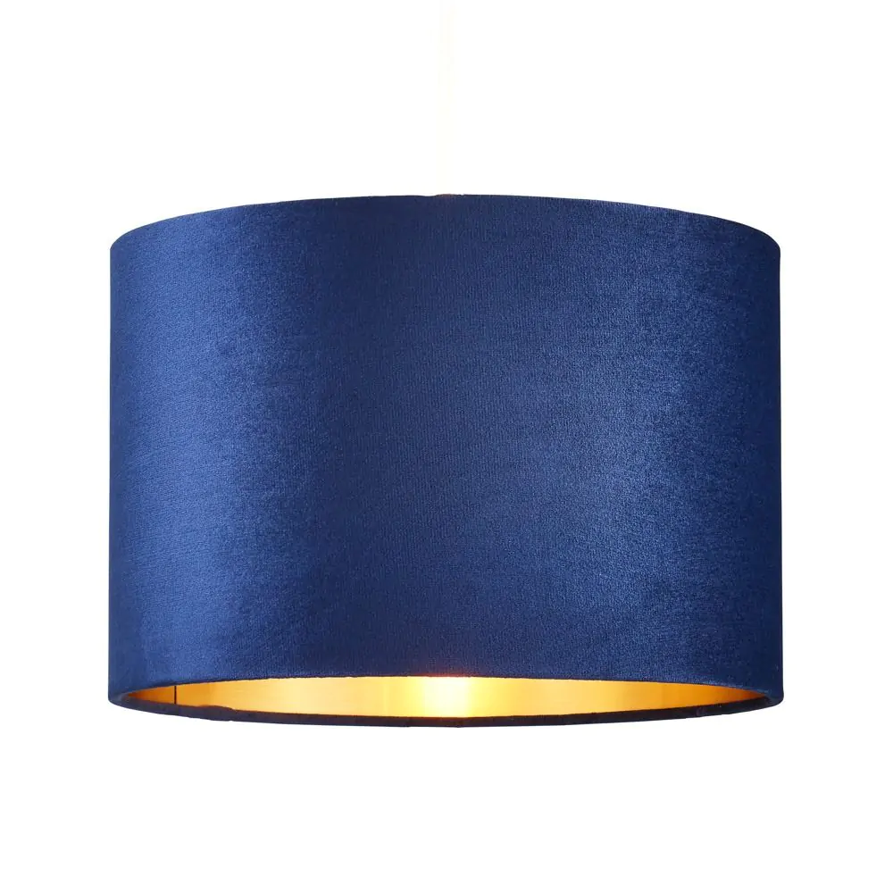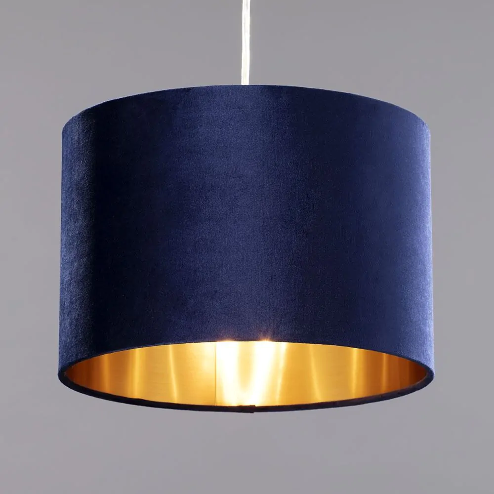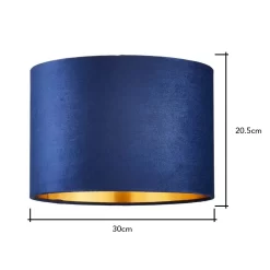 The Velvet 30cm Shade in Navy and Brass adds a luxurious look to your home’s interior lighting arrangements. Finished in navy, the velvety shade provides your room with a glamorous sheen, creating a rich, bold atmosphere. The brass lining on the inside reflects the light and projects a warm glow into your room, with a more relaxed, soothing feeling. With its easy to fit functionality, this shade can be easily fit to any pre-existing fitting, perfect for redecorating.