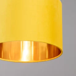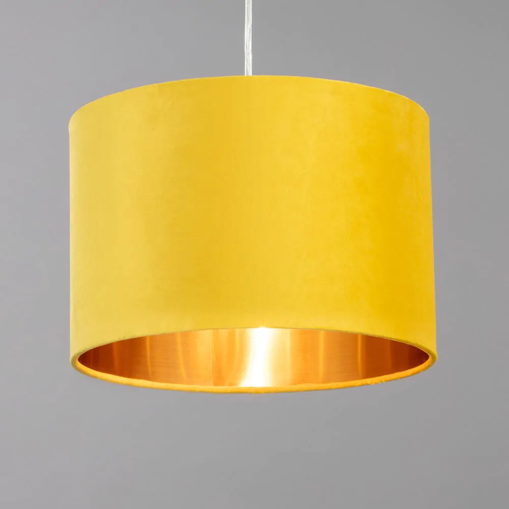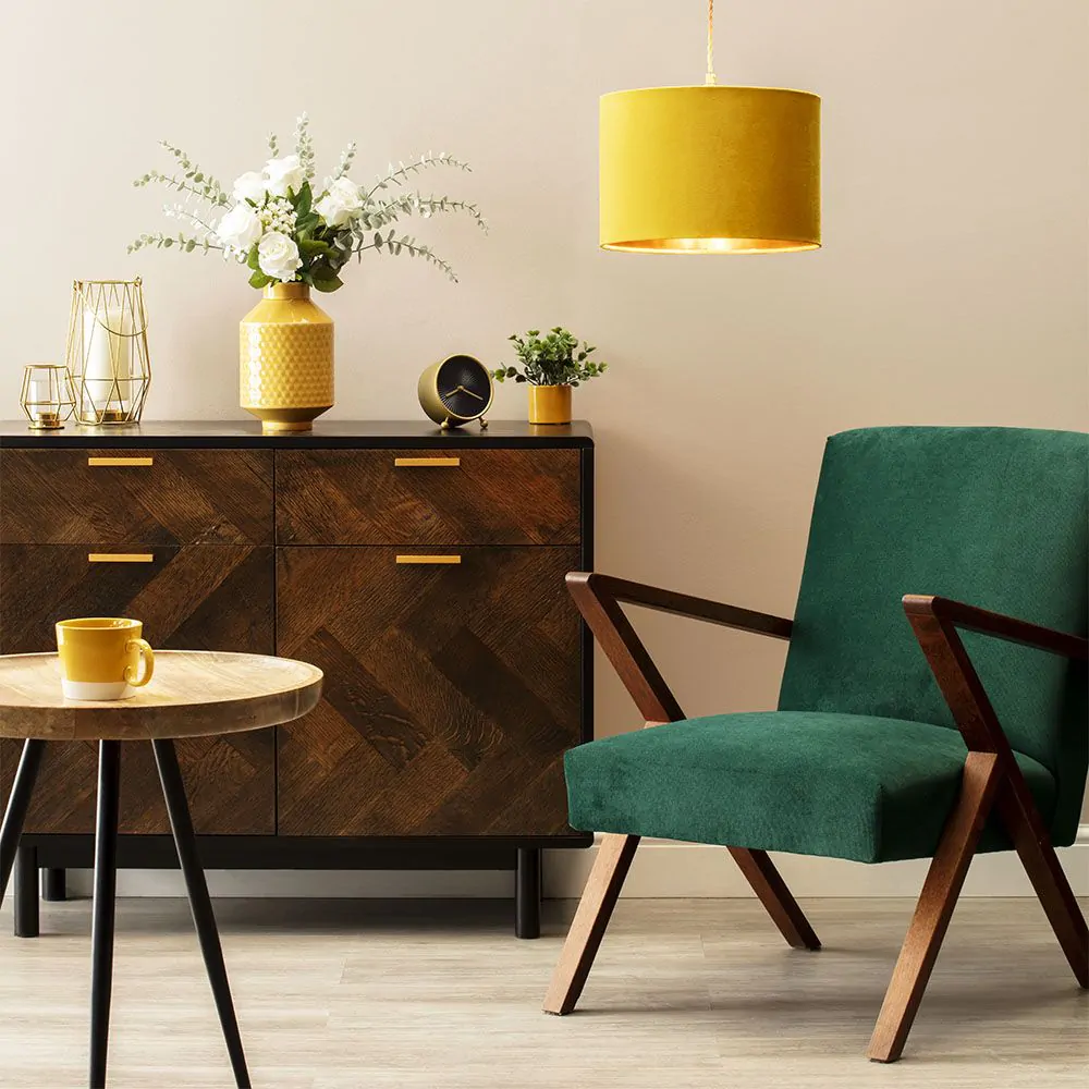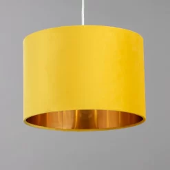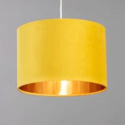 The new Velvet 30cm Shade in Ochre and Brass creates a bold pop of colour in your home. The ochre finish has a glamorous sheen that shimmers in the light to create a luxurious accent in your room. Within, the brass lining projects a warm, soothing light that changes the mood in every room. With easy to fit functionality, this mid-century shade can be easily incorporated onto any existing fitting.