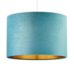 The new Velvet 30cm Shade in Teal and Brass adds a sophisticated look to your home, with a luxurious, velvety shade shimmering in the light and creating a gorgeous accent piece. The Teal finish has a gives your room a pop of colour that opens up any space, while the brass finish creates a warm glow that illuminates through your room to create a relaxed atmosphere. With easyfit capability, this shade can be easily incorporated onto any pre-existing base.