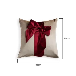 Velvet Bow Gift Wrap Cushion, Red and Natural