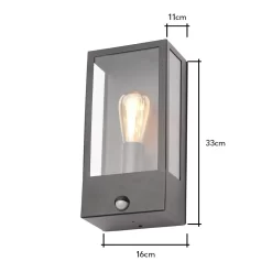 The Wallace Outdoor Wall Light is guaranteed to make a stylish and practical addition to your outdoor lighting set up. This light is a modern take on the classic lantern design and comes in a sleek black finish for an urban aesthetic to the outside of your home. It also features a useful PIR sensor which detects movement outside your home and instantly triggers the light, acting as an added security feature.
