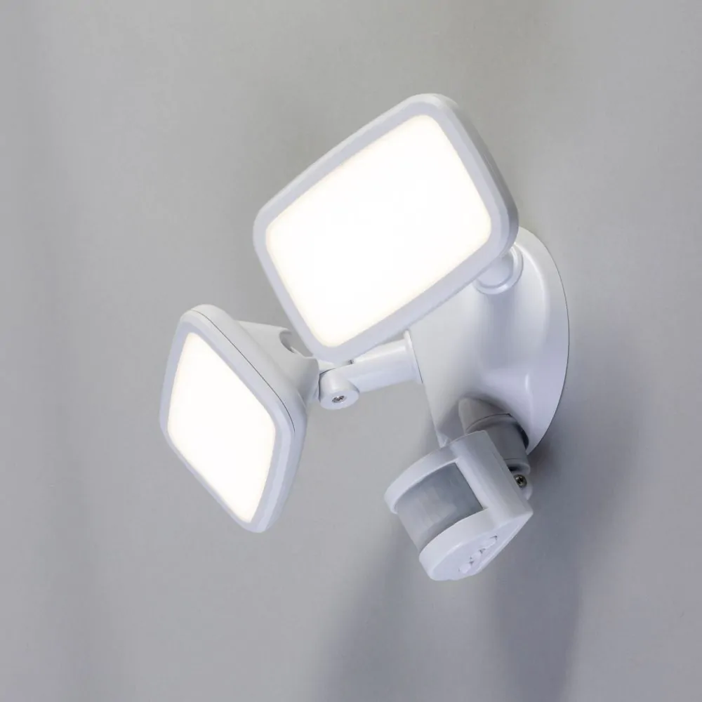 Wilson Twin 20 Watt LED Outdoor Flood Light with PIR Sensor, White