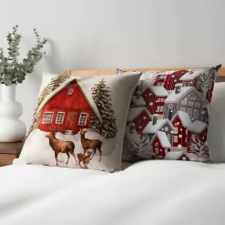 Cosy up with your favourite festive book or movie with the Winter Town Cushion in Red and White. The snowy landscape of this winter throw cushion adds a relaxing festive accent to your seasonal decor. The red and white finish of this holiday pillow is accentuated by hues of brown and grey, perfect for creating a Christmasy feeling.