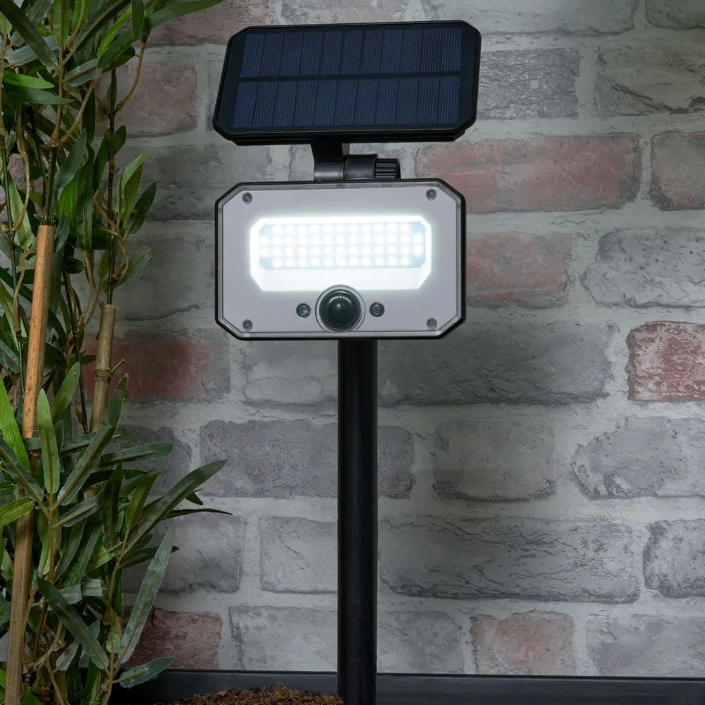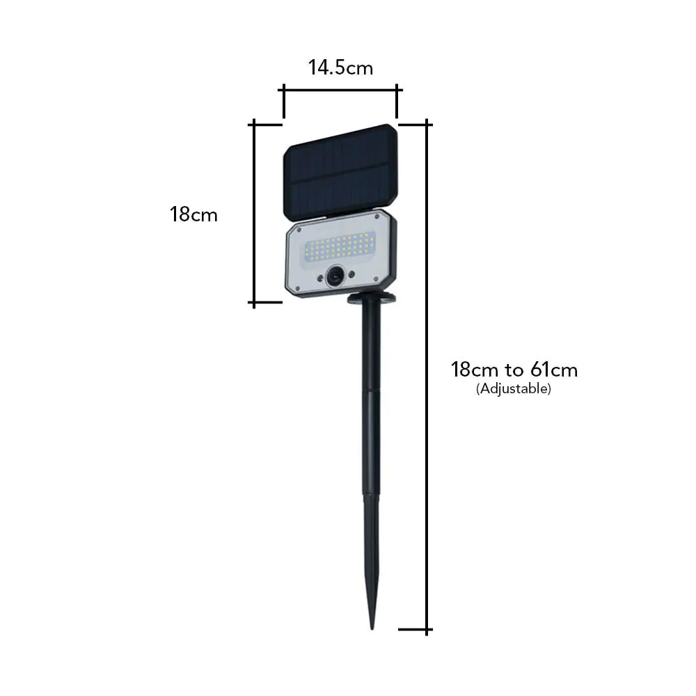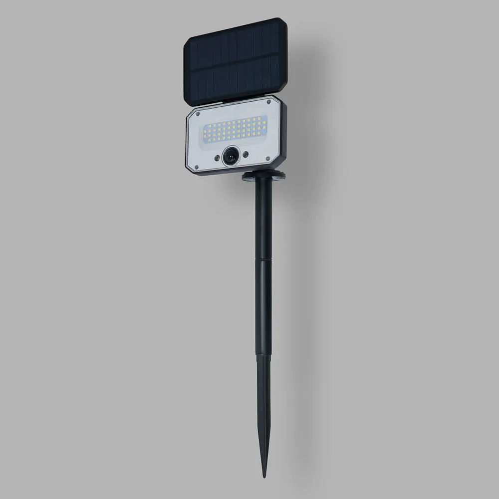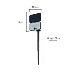 Increase the visability of your external areas with the Zeke LED Outdoor Solar Flood Light Garden Spike Light. This handy spike light can simply be slotted into the ground, projecting the light outwards or mounted on the wall. Providing you with a practical array of lighting that increases the visibility of your external areas. The IP54 rating ensures this lighting is suitable for all weather conditions, while to solar technology ensures you have no additional energy costs, simply charges itself in sunlight. This light will provide you with up to 11 hours of lighting per full charge.