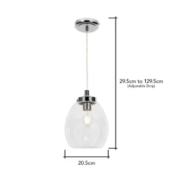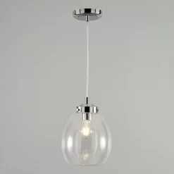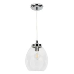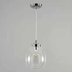 Zeta Clear Glass Bathroom Ceiling Pendant, Chrome