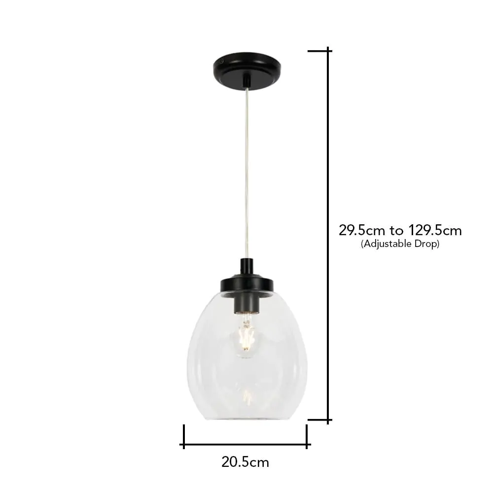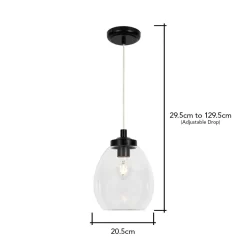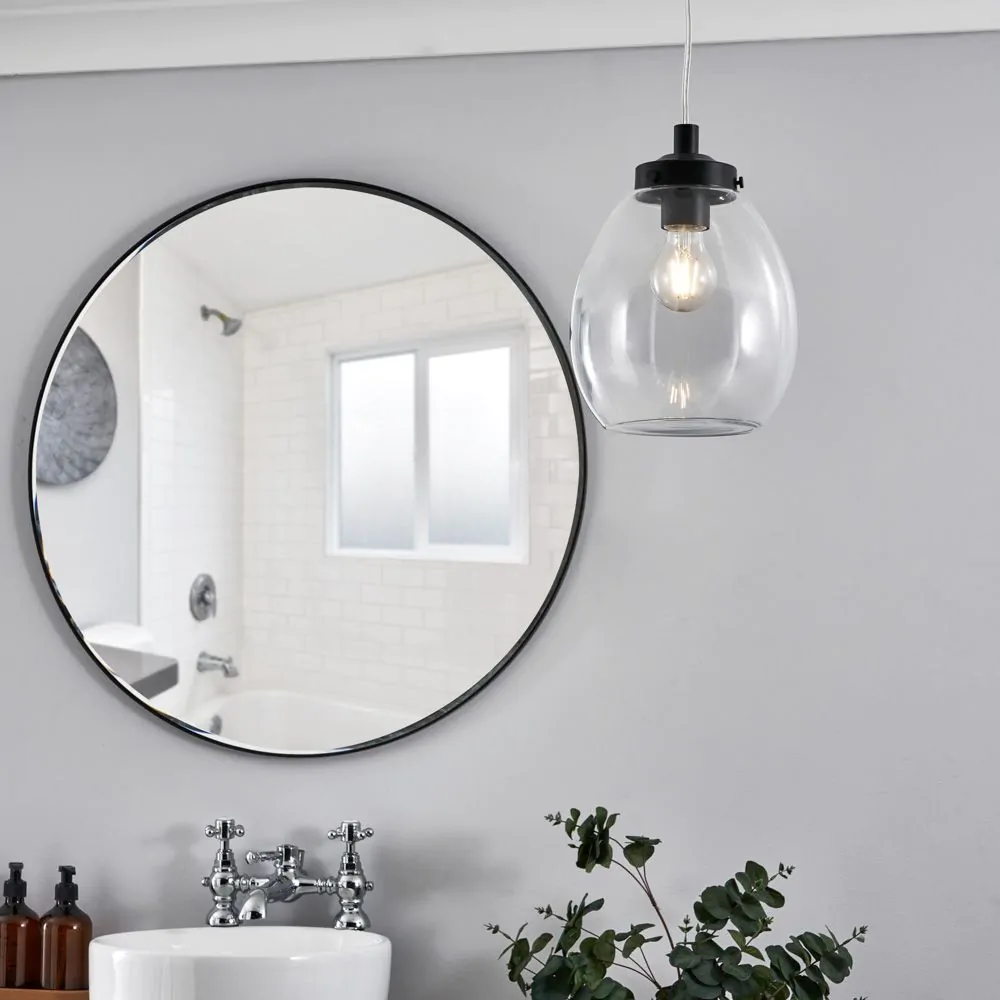 Simple, stylish, and practical, the Zeta Clear Glass Bathroom Ceiling Pendant in Black is the ideal ceiling light for any room in your home. The black finish on this pendant light makes it perfect for blending with most home interior decor choices, with an adjustable drop to fit low and high ceilings. The simple design and clear glass shade ensure you get a wide array of light dispersed from the lighting fixture, ensuring good visibility within your home. The IP44 rating ensures that this light is suitably water resistant to last the test of time in the damp conditions of a bathroom. However, do not be fooled this light looks just as good anywhere in your home.