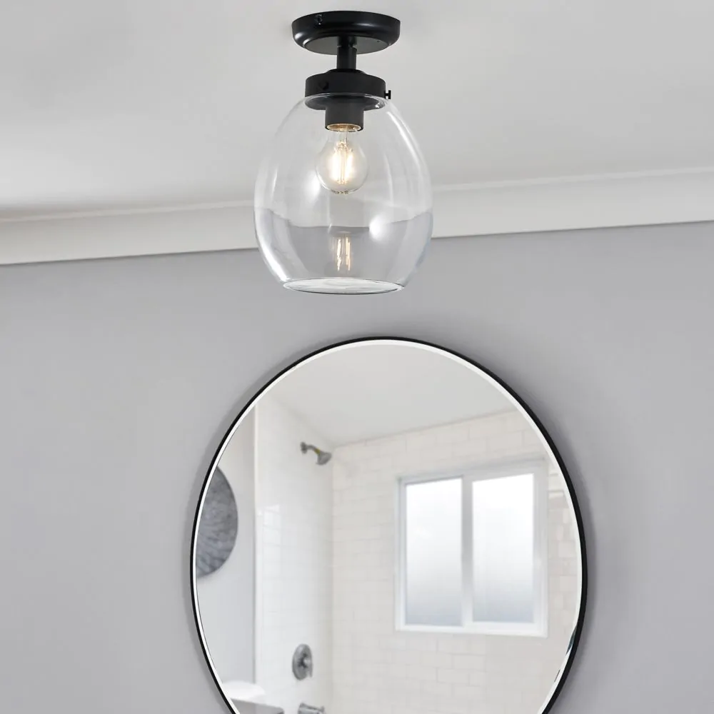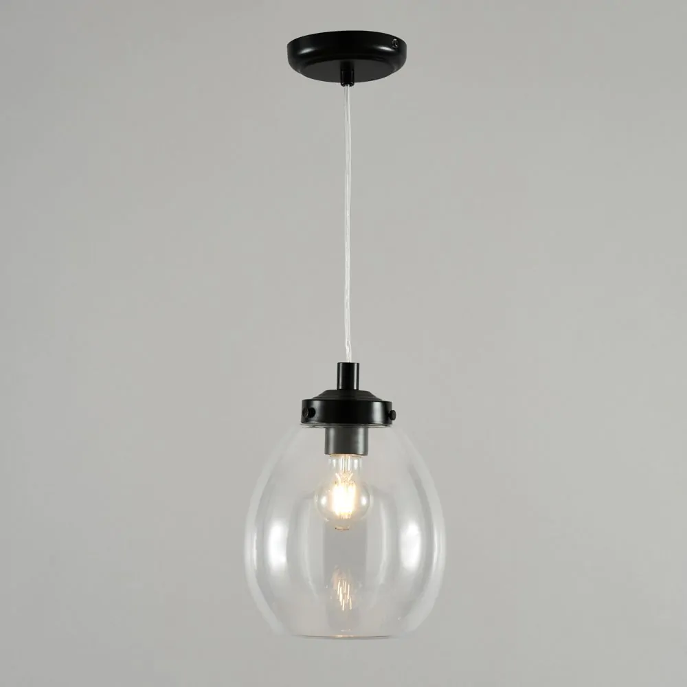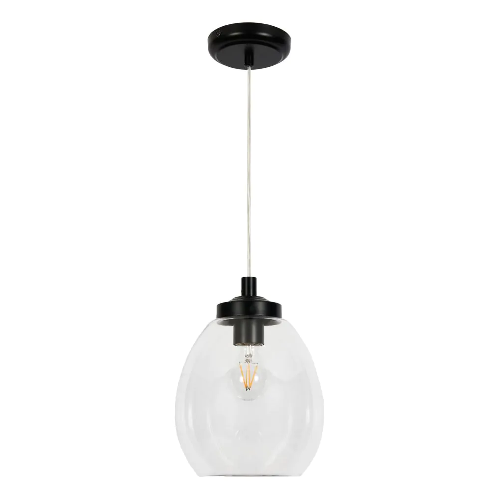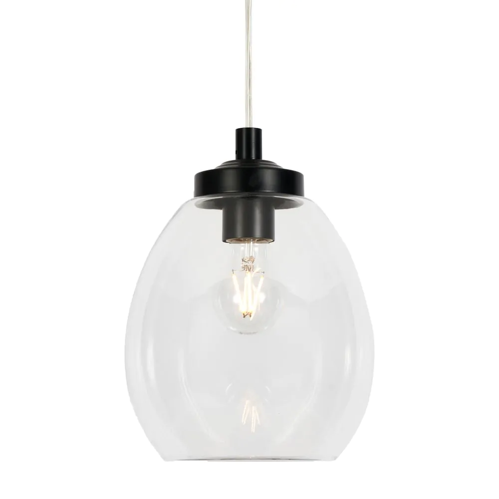 Zeta Clear Glass Bathroom Ceiling Pendant, Satin Black